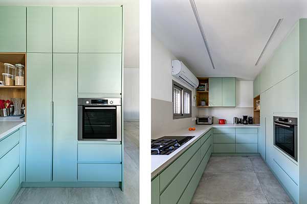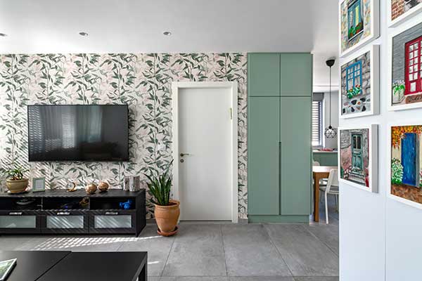 "בבית אמו שלט הצבע הירוק, והוא פשוט אוהב ירוק" מסבירות ענבר ונורית. "החלטנו שהירוק יהיה הגוון המוביל, ושילבנו צמחיה טבעית ומוטיבים צמחיים כסמל להתחלה וצמיחה".