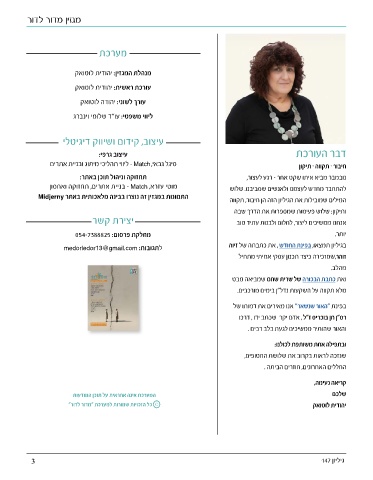 עורכת ראשית :יהודית לוטואק המילים שמובילות את הגיליון הזה הן חיבור ,תקווה