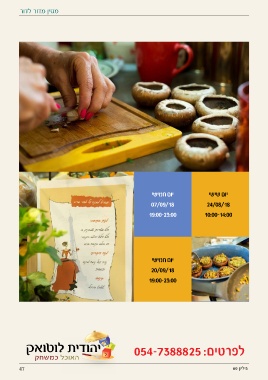 מגזין מדור לדור יום חמישי יום שישי 07/09/18 24/08/18 19:00-23:00 10:00-14:00 יום חמישי 20/09/18 19:00-23:00 י לפרטים054-7388825 : ל גיליון 47 60