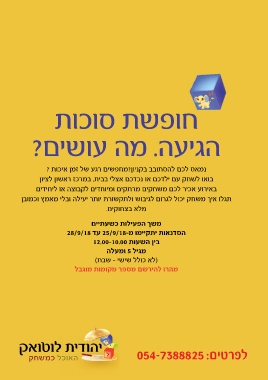 הסדנאות יתקיימו מ 25/9/18-עד 28/9/18