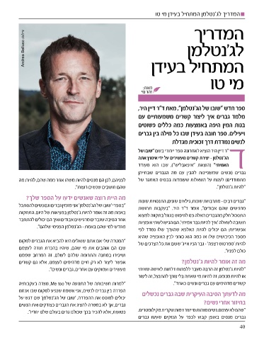 "בספרי 'שובו של הג׳נטלמן' אני מזמין גברים וגם נשים להסתכל ספר חדש "שובו של הג'נטלמן" ,מאת ד"ר דיין היר,
